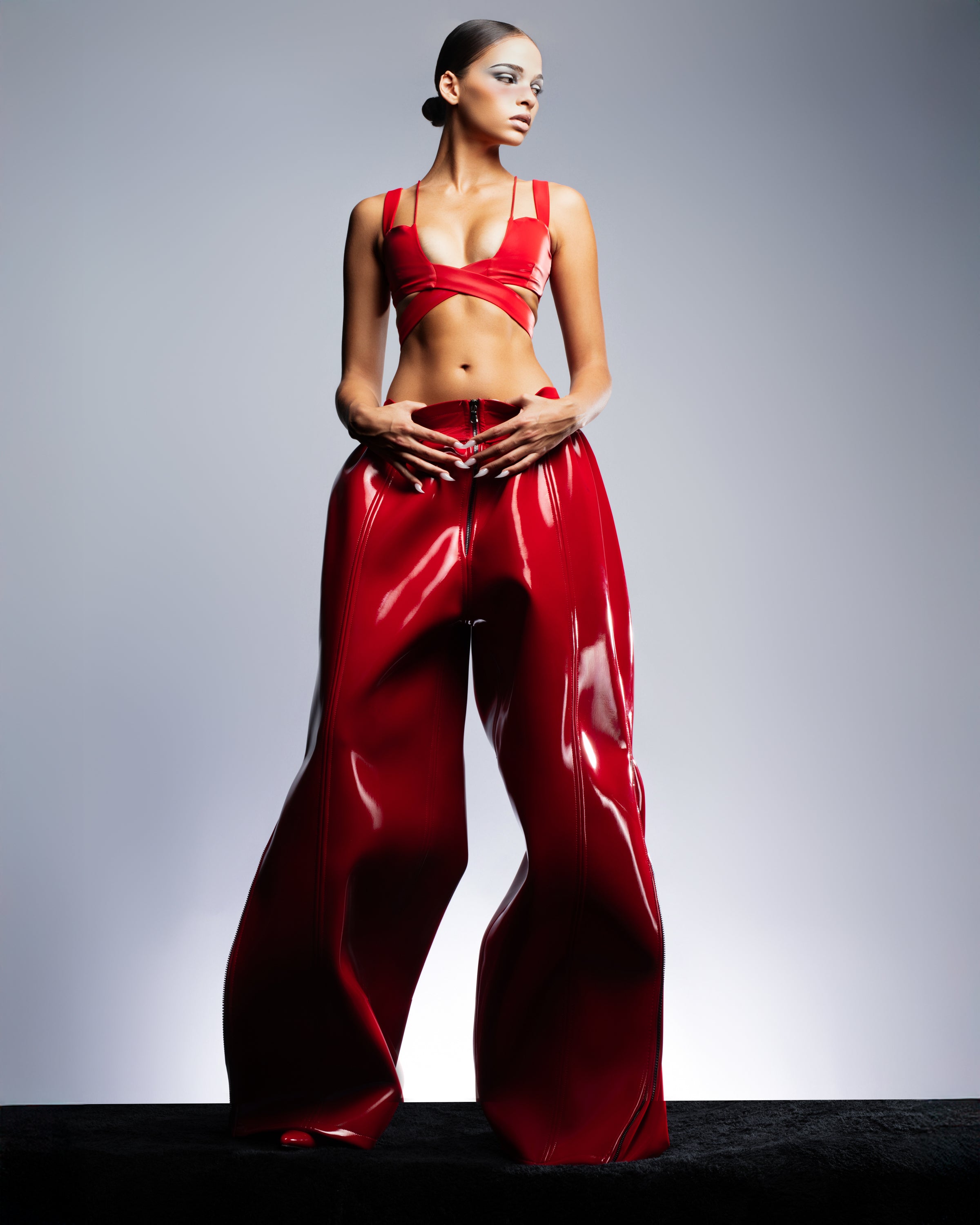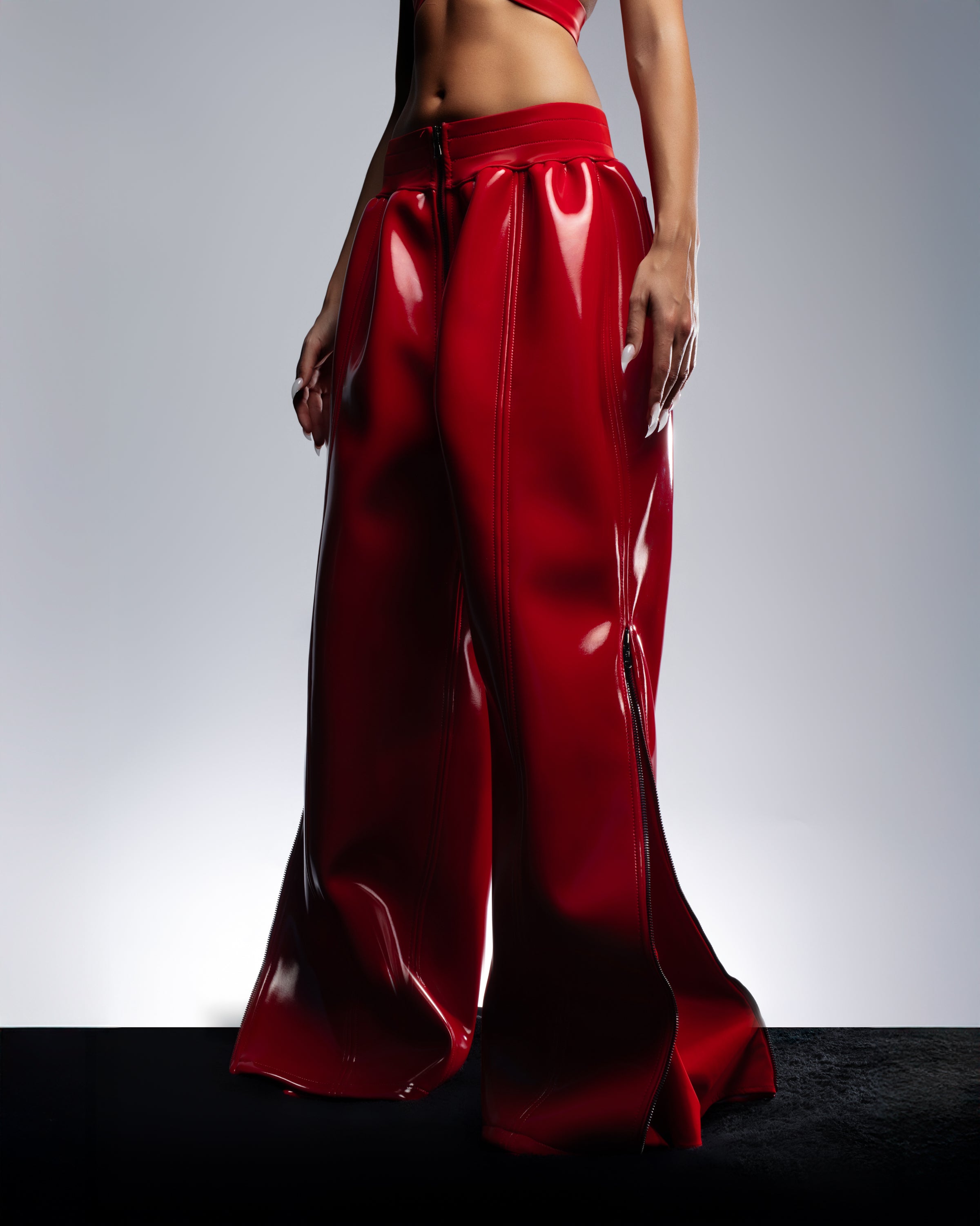 HIGH GLOSS RED LIQUID SWEATPANTS