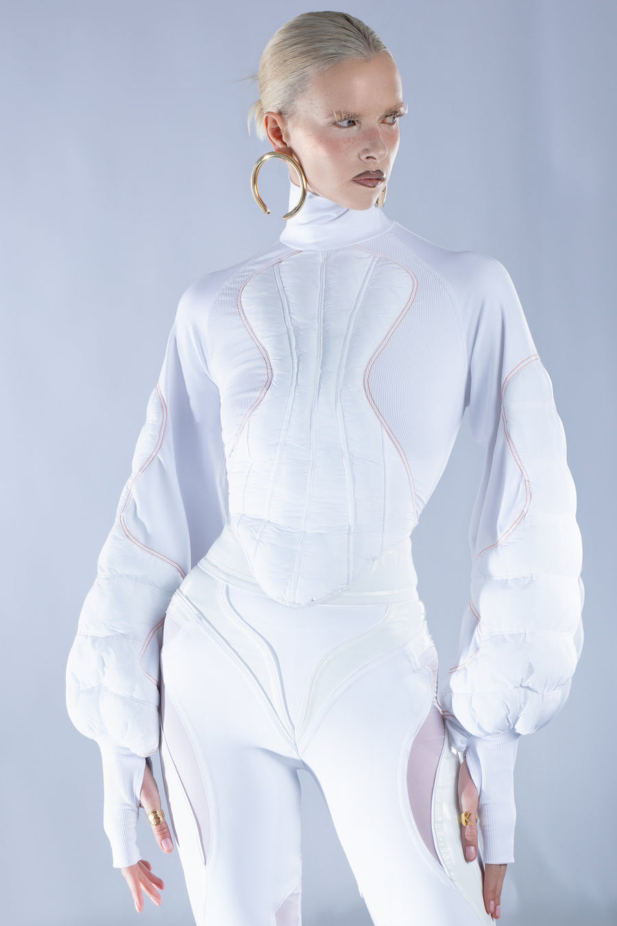 WHITE QUILTED PUFFER SWEATER