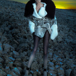 BLACK & WHITE CROPPED LEATHER AND FUR JACKET