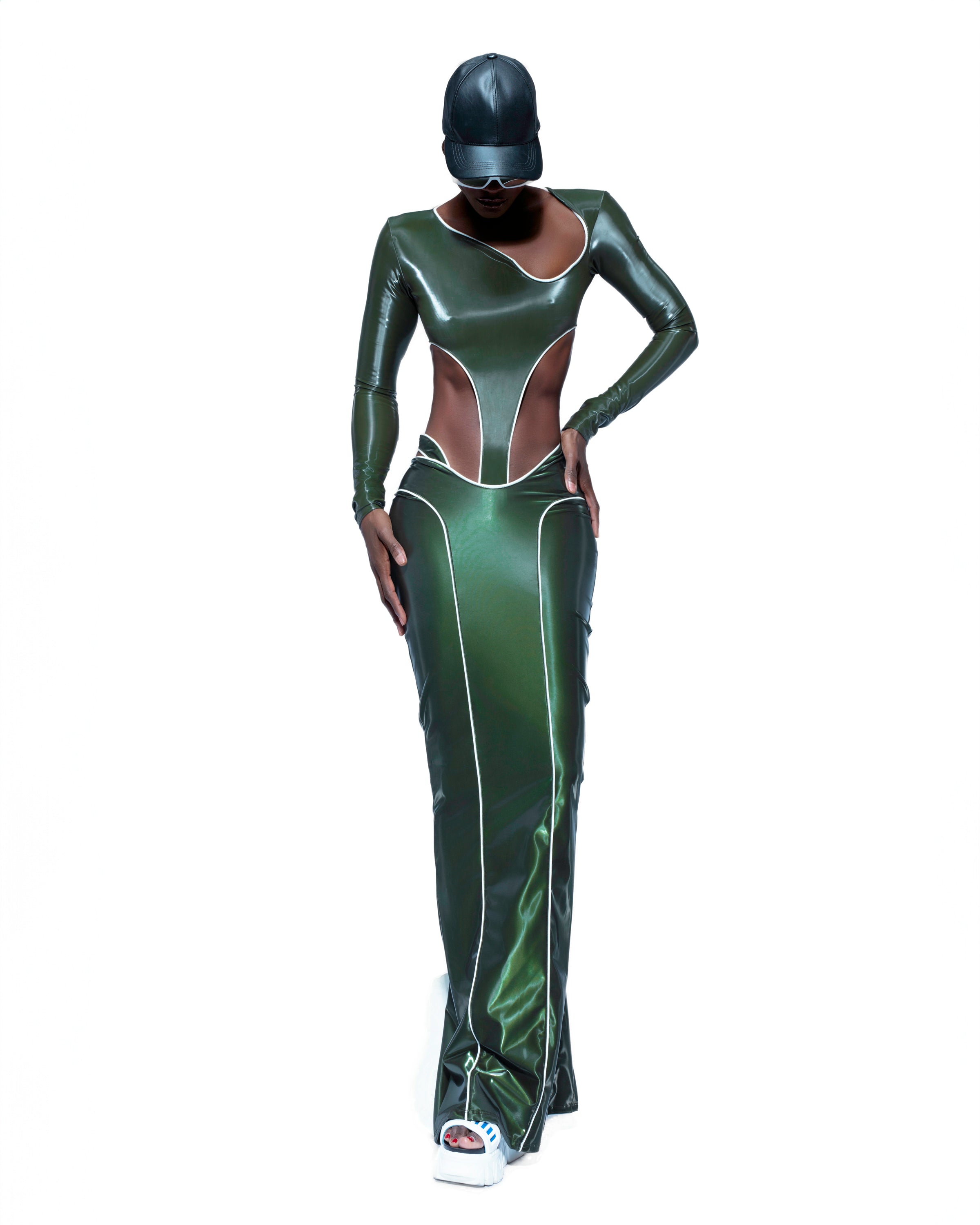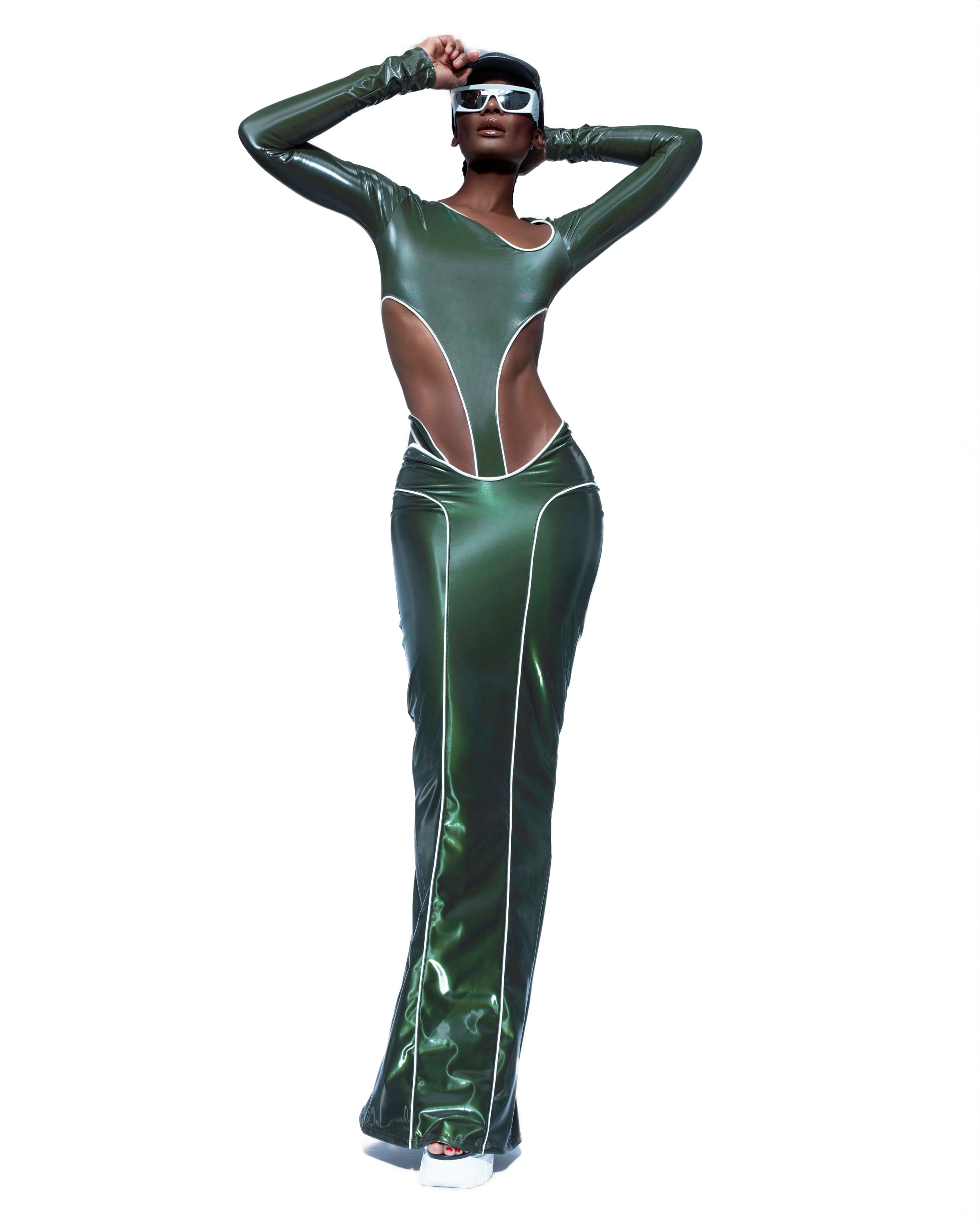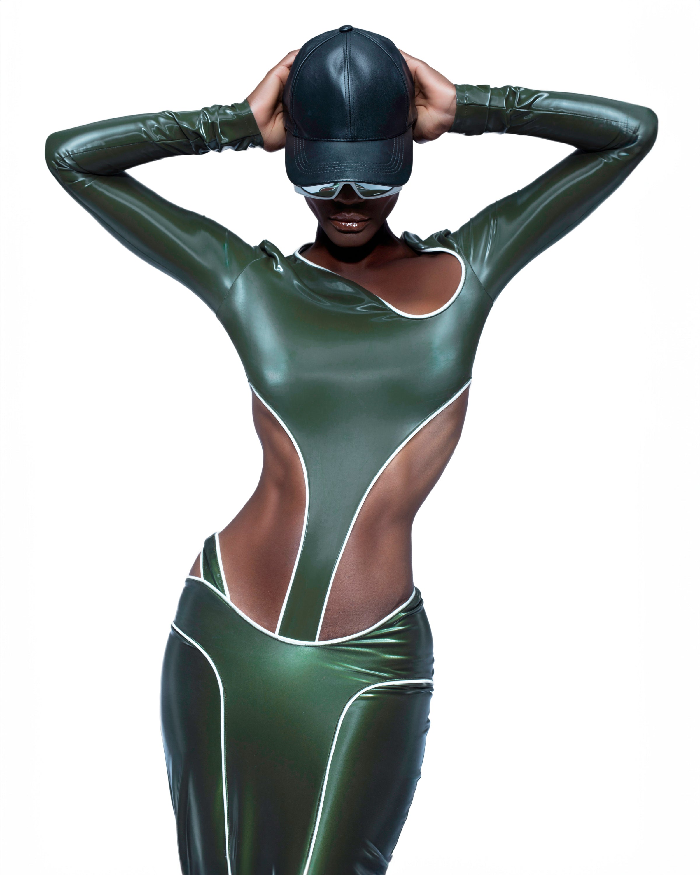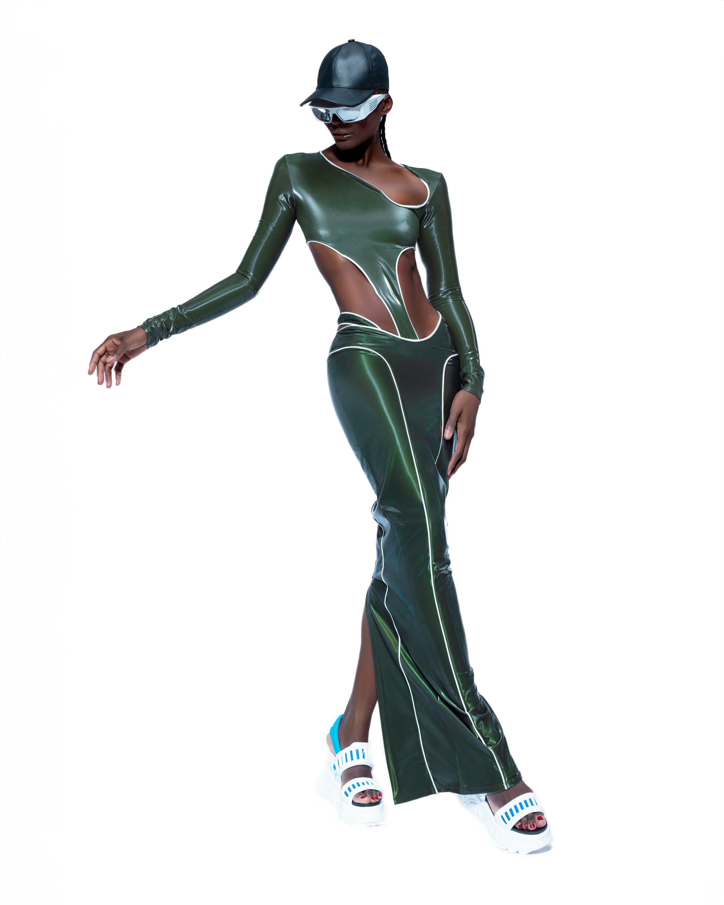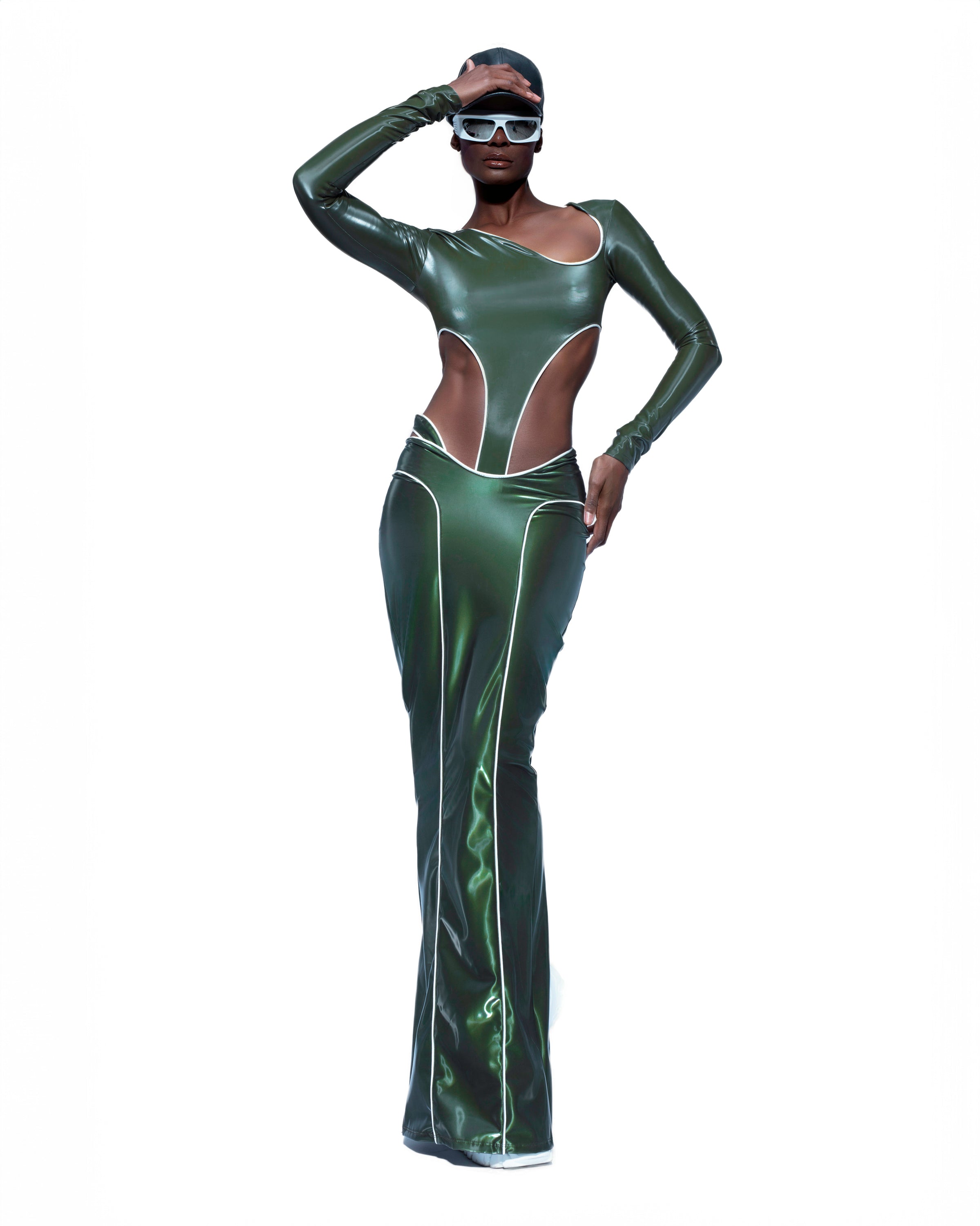 OLIVE GREEN REFLECTIVE SKIRT + BODYSUIT SET