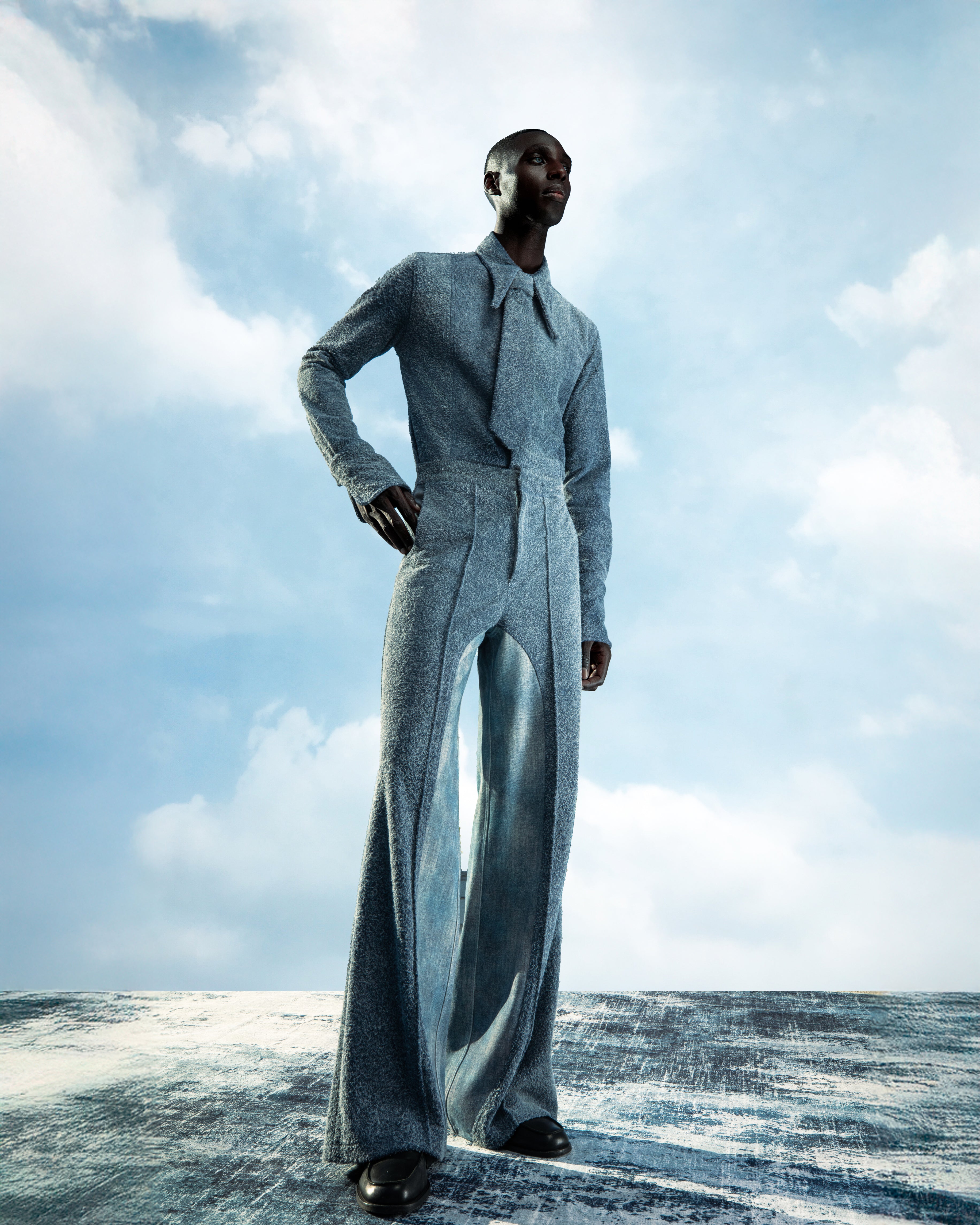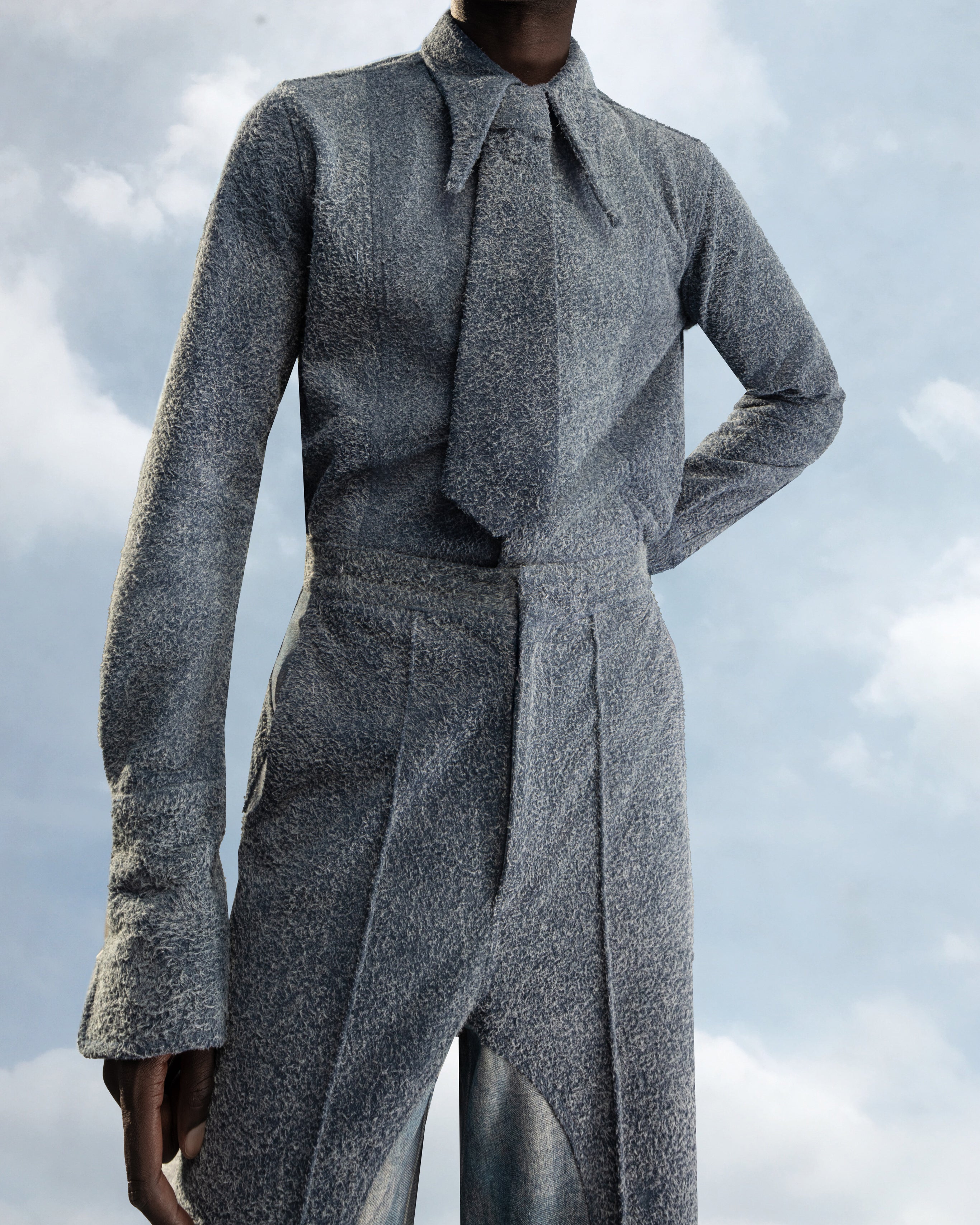 BLUE FUZZY LEATHER TIE